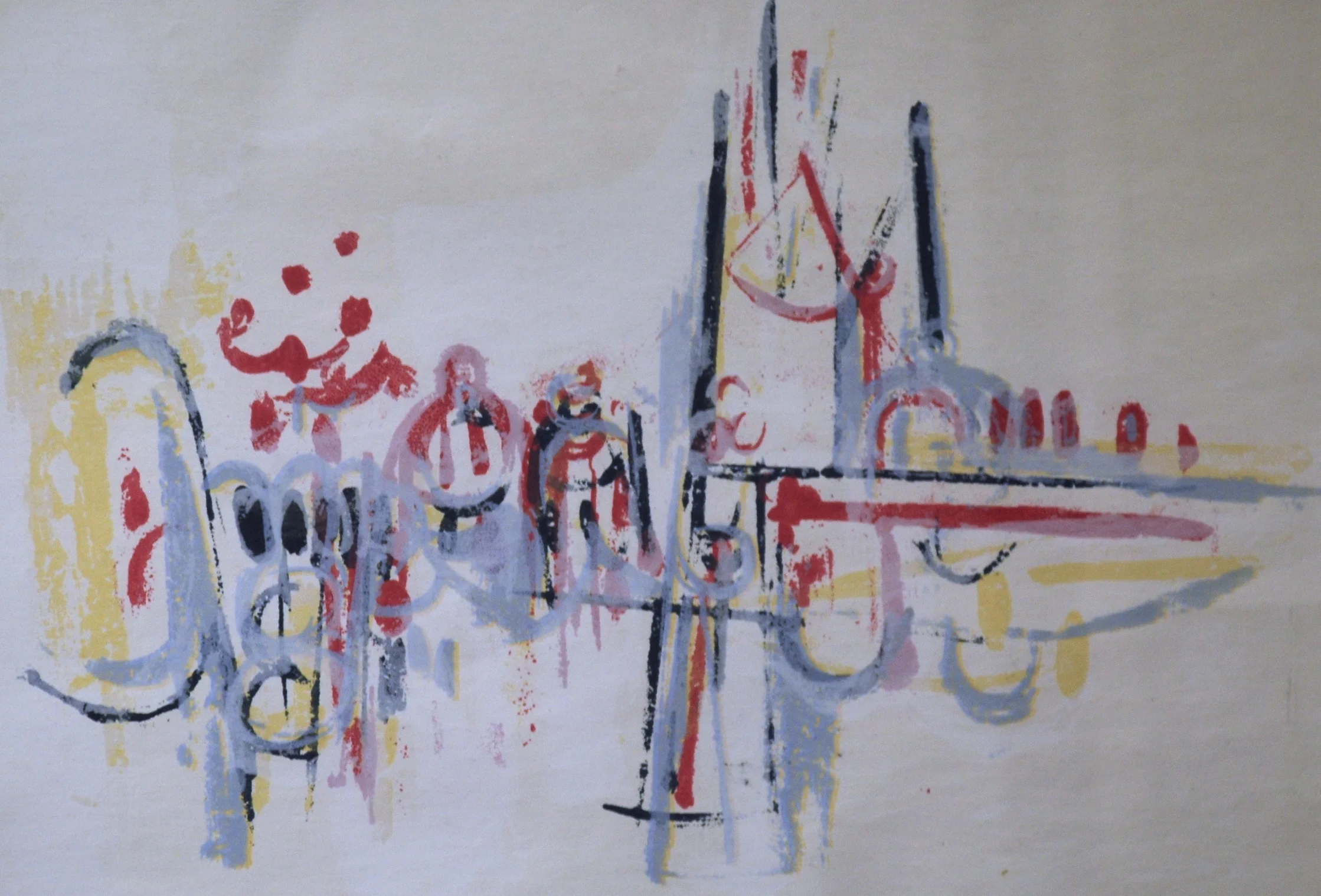 'Eight Prints,' 1959, by the Limners, a group of artists living and working in Victoria, BC. RICHARD CICCIMARA, BOB DE CASTRO, DUNCAN DE KERGOMMEAUX, NITA FORREST, ELZA MAYHEW, MOLLY PRIVETT, HERBERT SIEBNER, BILL WEST, eight coloured prints, each 41 X 39 cm., Victoria, British Columbia, Canada.